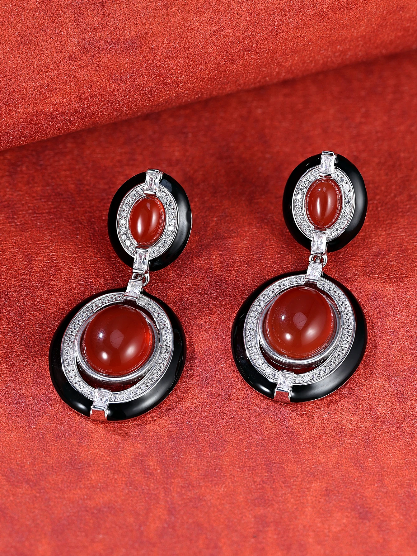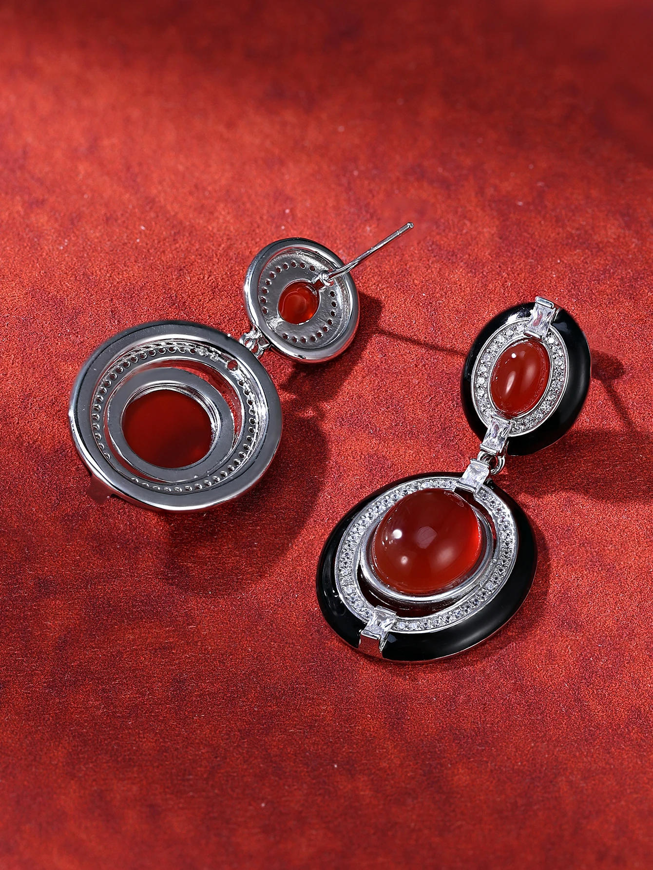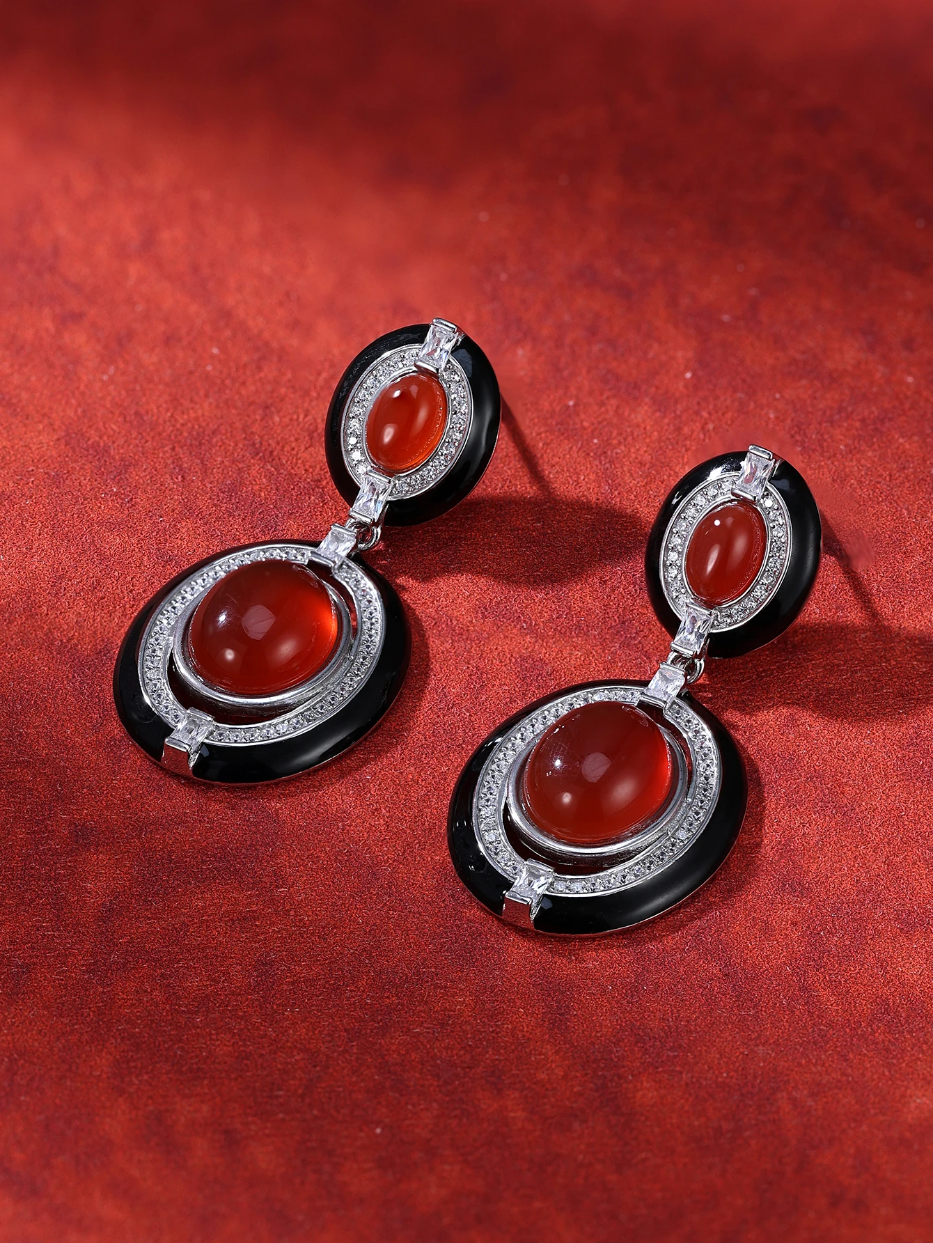 Trendy Geometric Vintage Wings Clip-on Earrings with Platinum Plated Brass and Resin Inlay Zircon Bezel Setting Perfect Gift